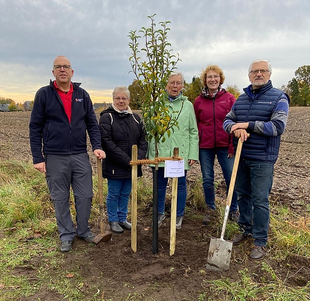 Der Vorstand nahm die Herausforderung gerne an: Am 1. November trafen sich Mitglieder des Ortsvereins an der Bahnlinie beim Papenkamp, um einen Birnenbaum zu pflanzen. Dank der fachkundigen Beratung der Gärtnerei Pröhl konnte der Baum sicher und professionell gesetzt werden. Ein kleiner Baum, der für große Werte steht: Zusammenhalt, Verantwortung und Zukunft.