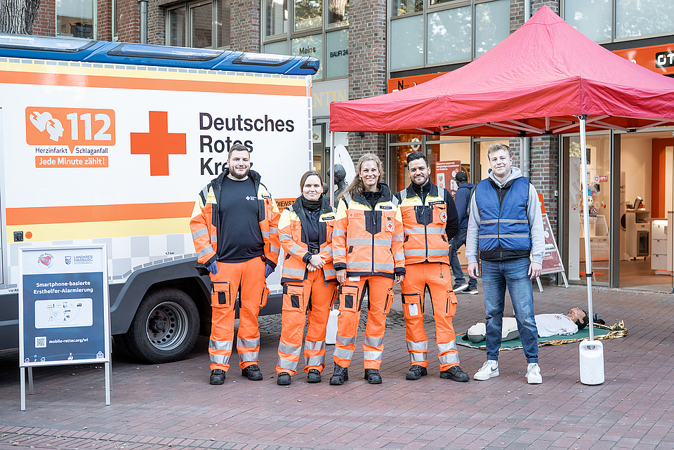 An Übungspuppen konnten Interessierte die Herzdruckmassage selbst ausprobieren. „Uns war es wichtig zu zeigen, dass jeder Teil der Rettungskette sein kann – und dass jedes Glied dieser Kette entscheidend ist“, betont das DRK Harburg-Land. Die meisten Notfälle passieren im häuslichen Umfeld – und dann kommt es auf die Menschen in der Nähe an. Die Zahlen sprechen für sich: Rund 136.000 Menschen erleiden laut dem Deutschen Reanimationsregister jährlich außerhalb eines Krankenhauses einen Herzstillstand. Wenn Umstehende sofort handeln und eine Herzdruckmassage beginnen, können sie die Überlebenschancen verdoppeln oder sogar verdreifachen.